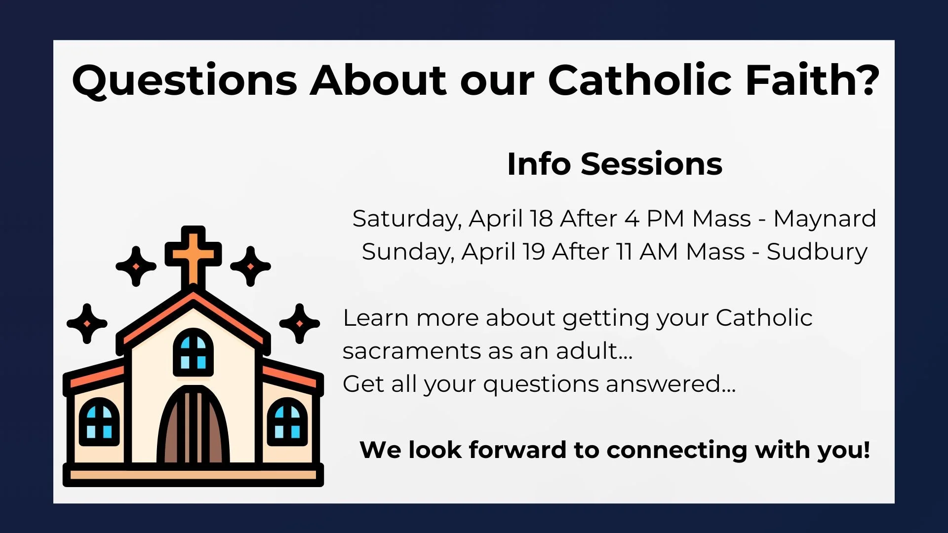 Welcome, we’re glad you’re here! If you’re new to the parish, you can register here.